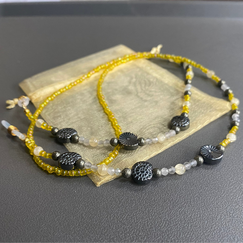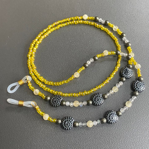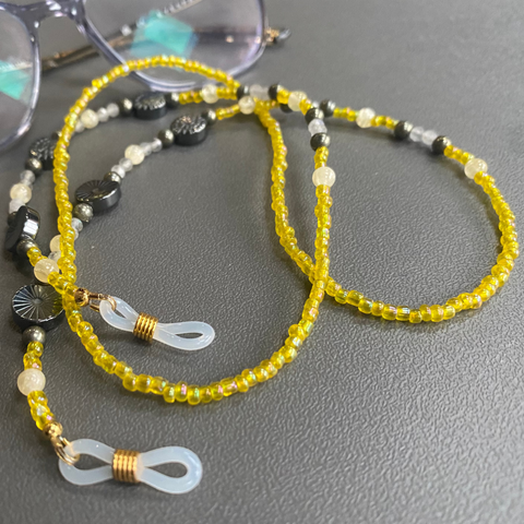 Glasses Chain Hematite and Yellow Beads